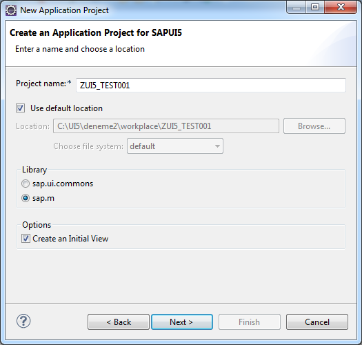 Açılan pencerede SAPUI5 Application Development klasörü altında Application Project seçeneğini seçiyoruz.
