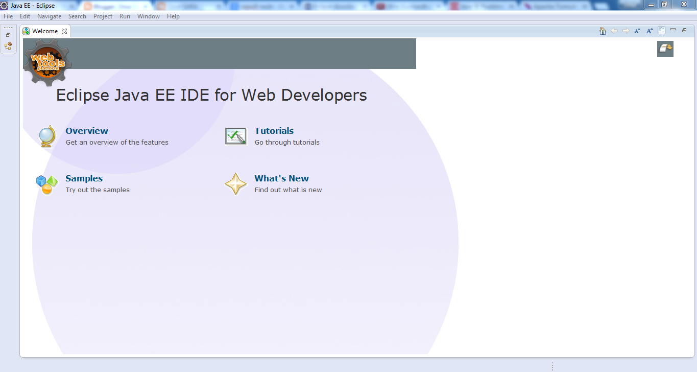 Ve nihayet aşağıdaki resimde göründüğü gibi eclipse ide mizin ekranı karşımıza çıktı.
